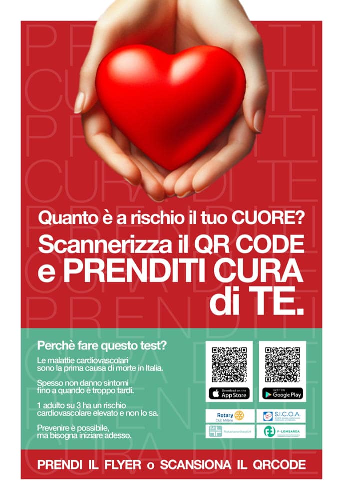 Ci sono diversi modi per conoscere il proprio rischio cardiovascolare. Tra questi l’utilizzo di apposite app come quella ideata con il contributo di S.I.C.O.A. ETS, Rotary Club Milano Duomo, Rotarians4Health e F-Lombarda Associazione chimica farmaceutica Lombarda tra titolari di Farmacia.